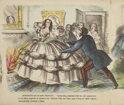 O uso da crinolina é um daquelas casos clássicos em que a moda representa bem a mentalidade de uma época. No caso, esse era o século XIX, época em que as mulheres deviam ser frívolas, inativas, delicadas e submissas. Seu uso se tornou popular a partir de 1829 e perdurou até meados de 1870, quando deu espaço à crinolette e, logo em seguida, ao bustle.